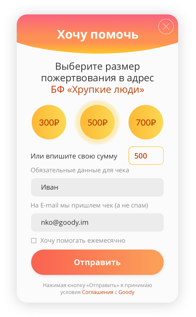 т для пожертвований