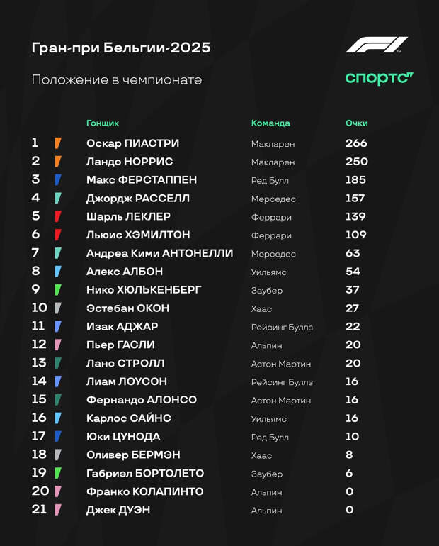 Ф1 таблица чемпионата на сегодня 130 фото