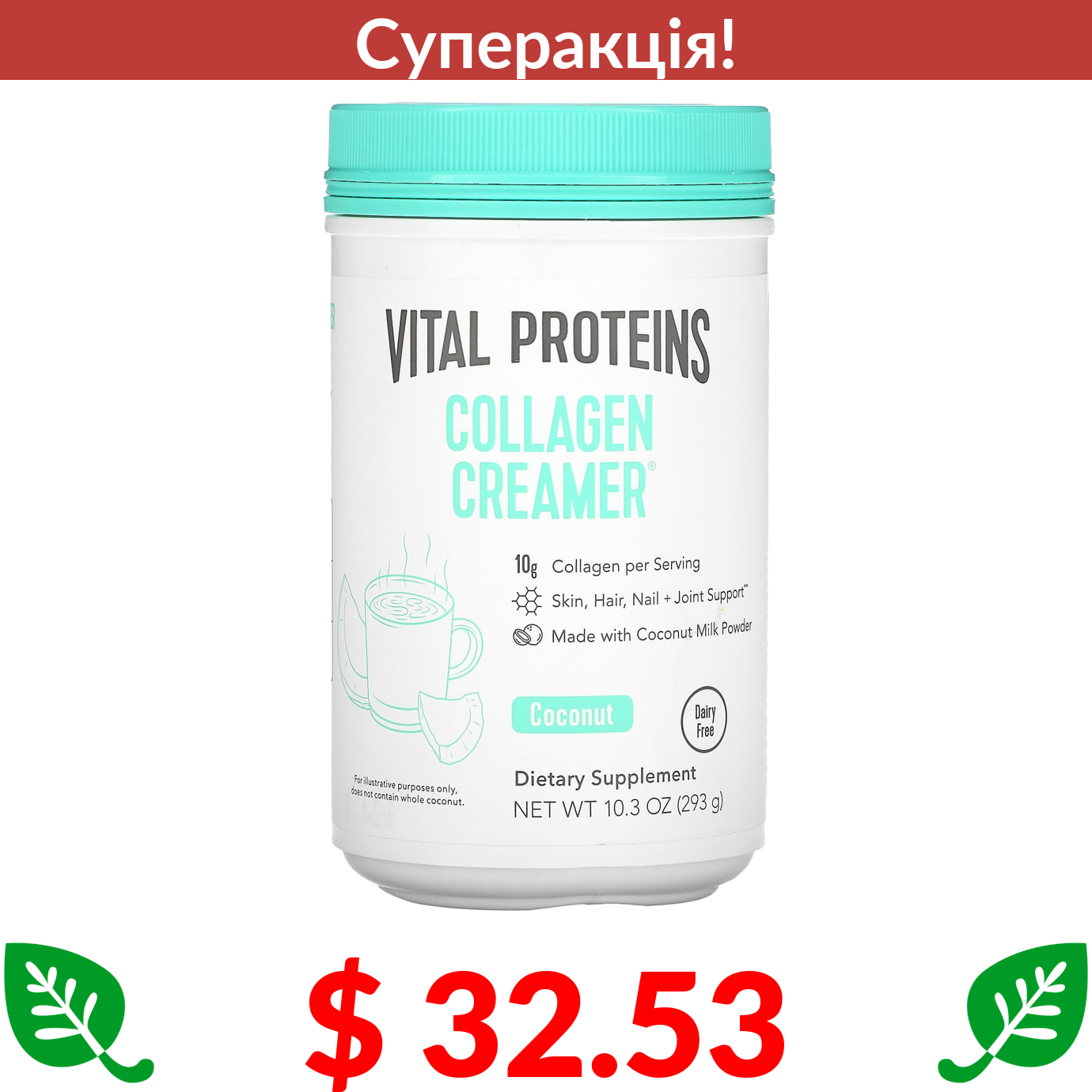$ 32.53 Vital Proteins, Collagen Creamer, кокос, 293 г (10,3 унції)