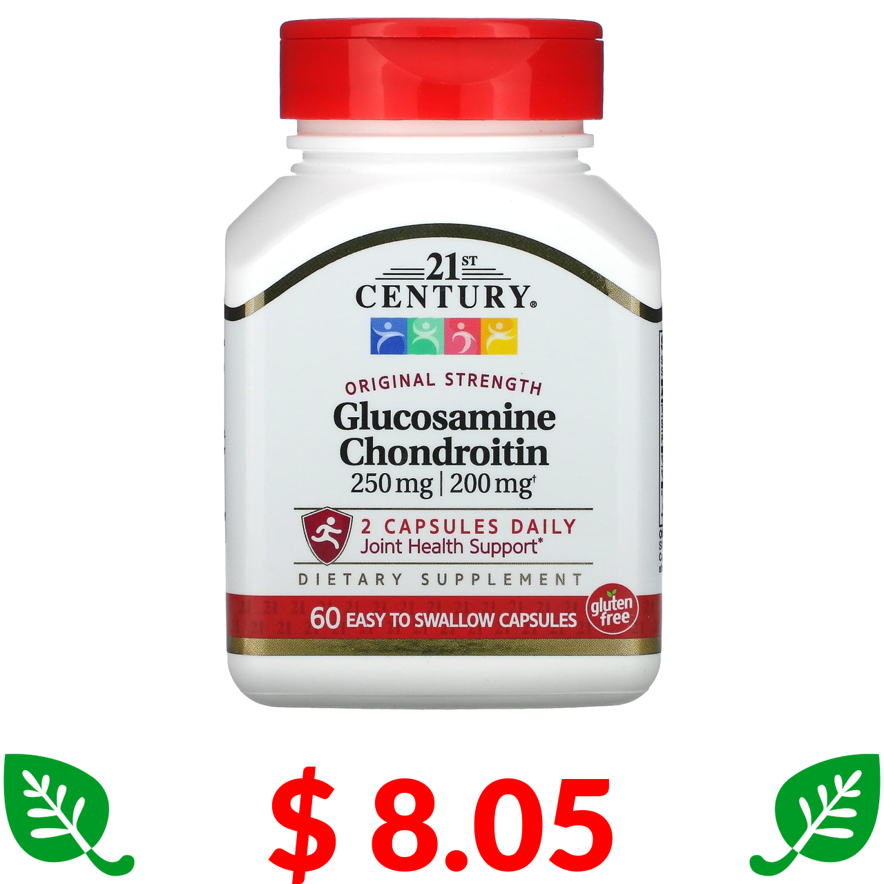 $ 8.05 21st Century, глюкозамін і хондроїтин зі звичайною силою дії, 60 капсул, які легко ковтати
