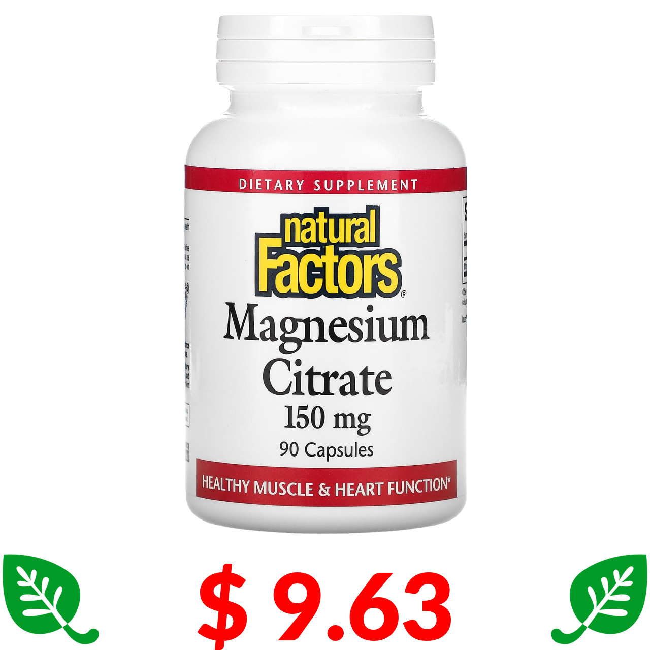 $ 9.63 Natural Factors, цитрат магнію, 150 мг, 90 капсул