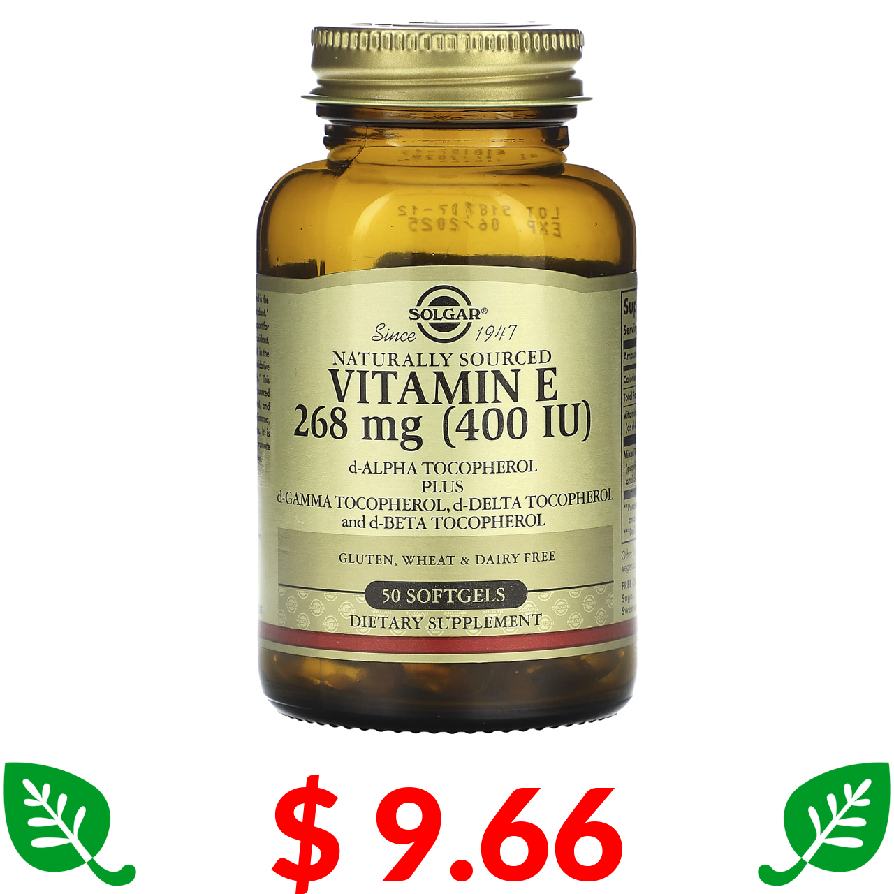 $ 9.66 Solgar, Naturally Sourced Vitamin E, 268 mg (400 IU), 50 Softgels