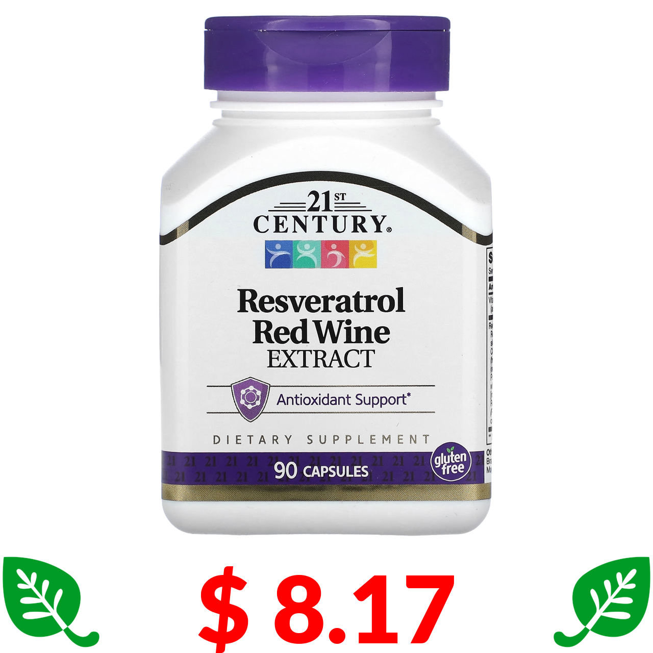 $ 8.17 21st Century, ресвератрол, екстракт червоного вина, 90 капсул