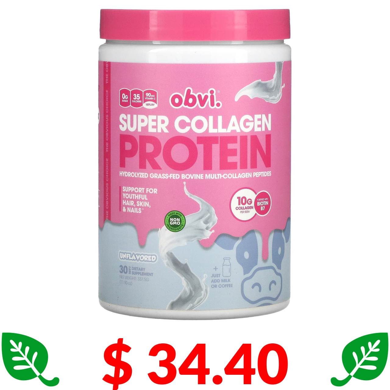$ 34.40 Obvi, Super Collagen Protein, Unflavored, 11.90 oz (337.5 g)