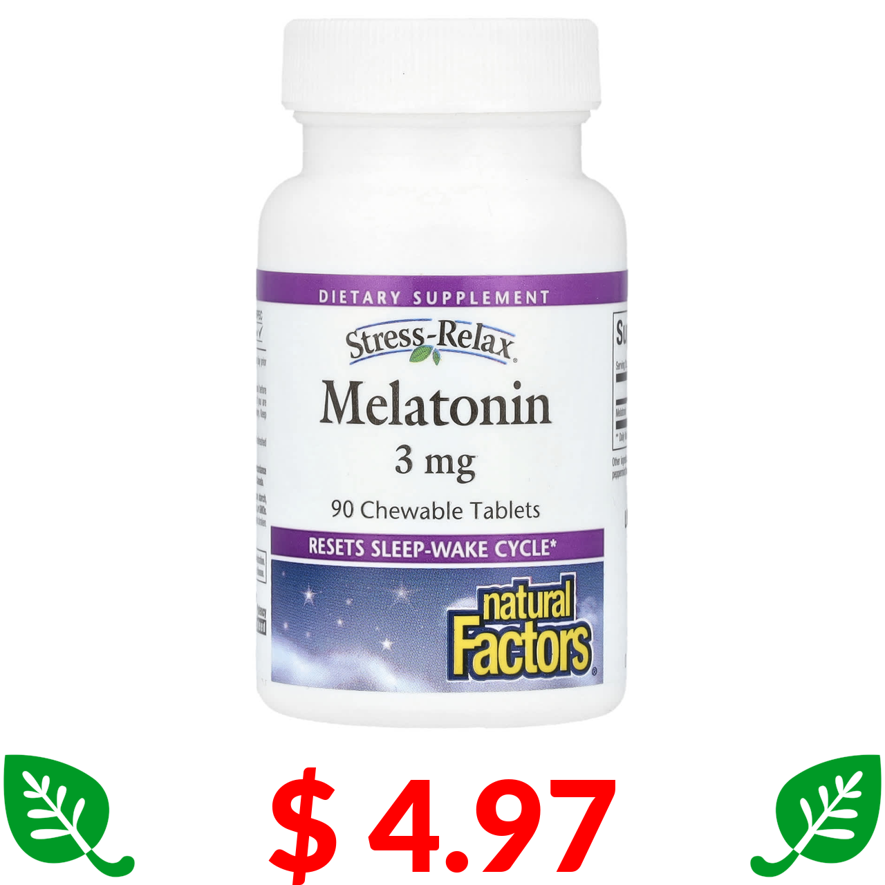 $ 8.71 Natural Factors, Stress-Relax, Melatonin, 3 mg , 180 Chewable Tablets