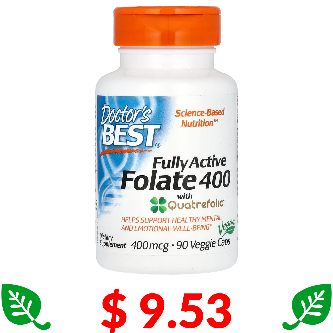 $ 9.53 Doctor's Best, комплекс активних фолатів з Quatrefolic, 400 мкг, 90 вегетаріанських капсул