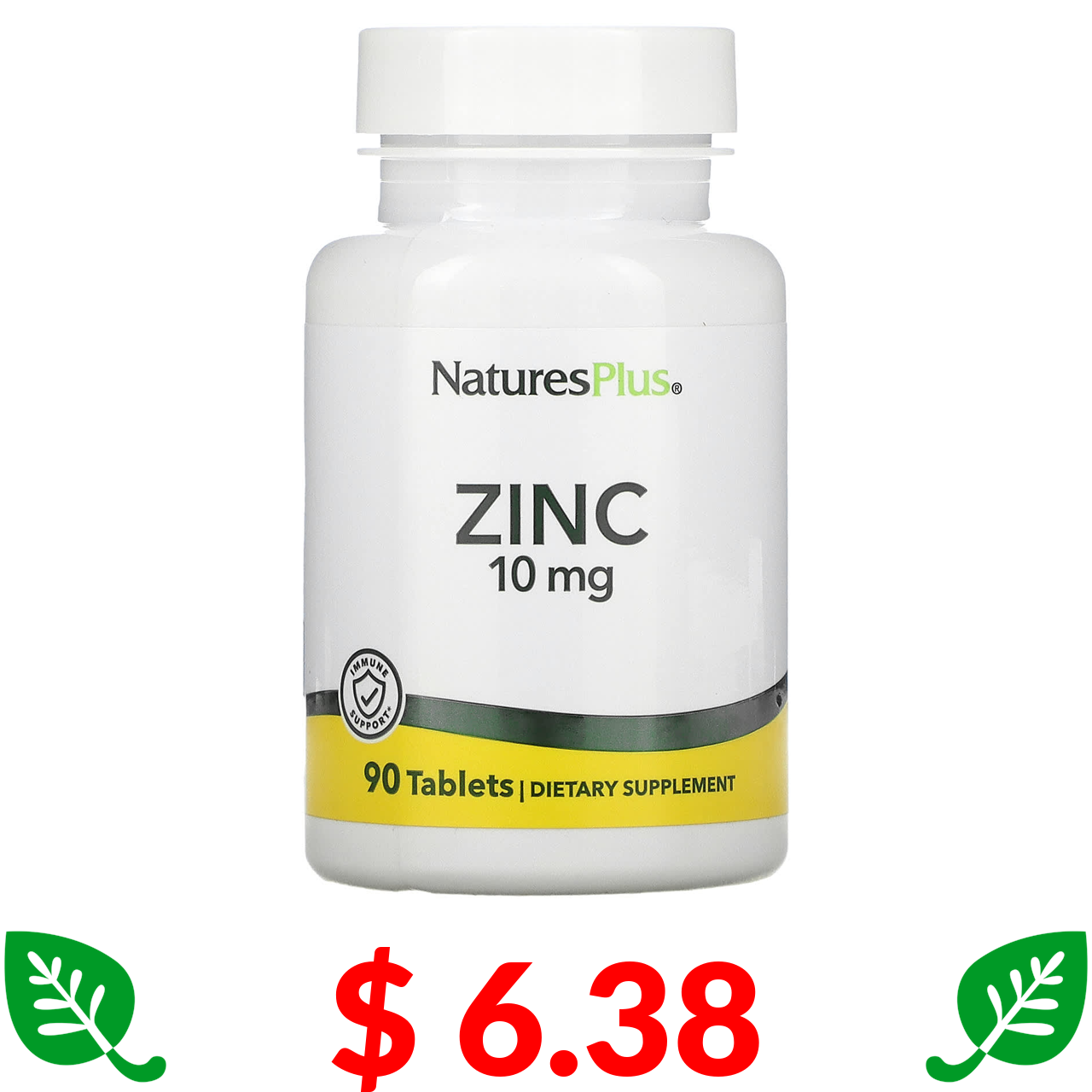 $ 6.38 Nature's Plus, цинк, 10 мг, 90 таблеток