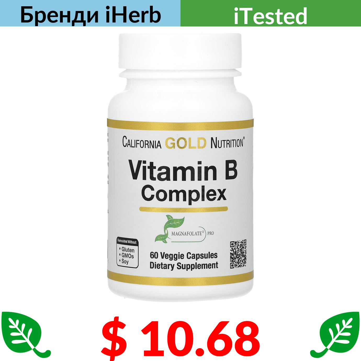 $ 10.68 California Gold Nutrition, комплекс вітамінів групи В, 60 вегетаріанських капсул