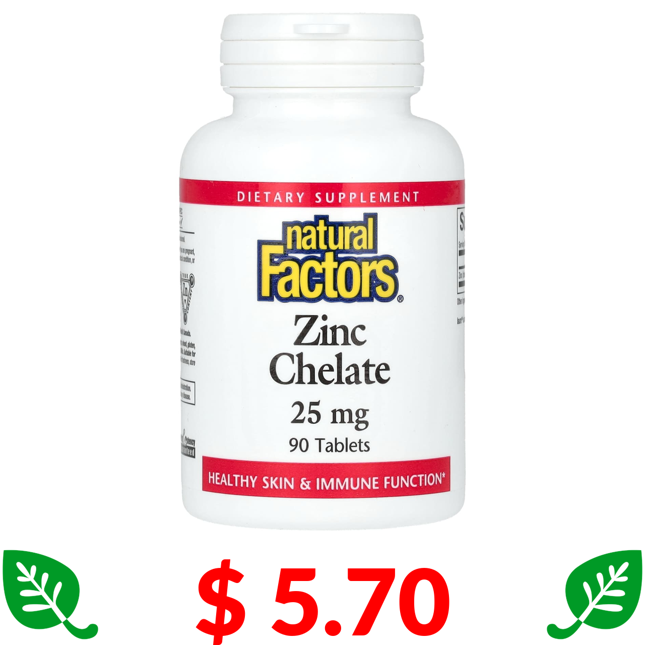 $ 5.70 Natural Factors, хелат цинку, 25 мг, 90 таблеток