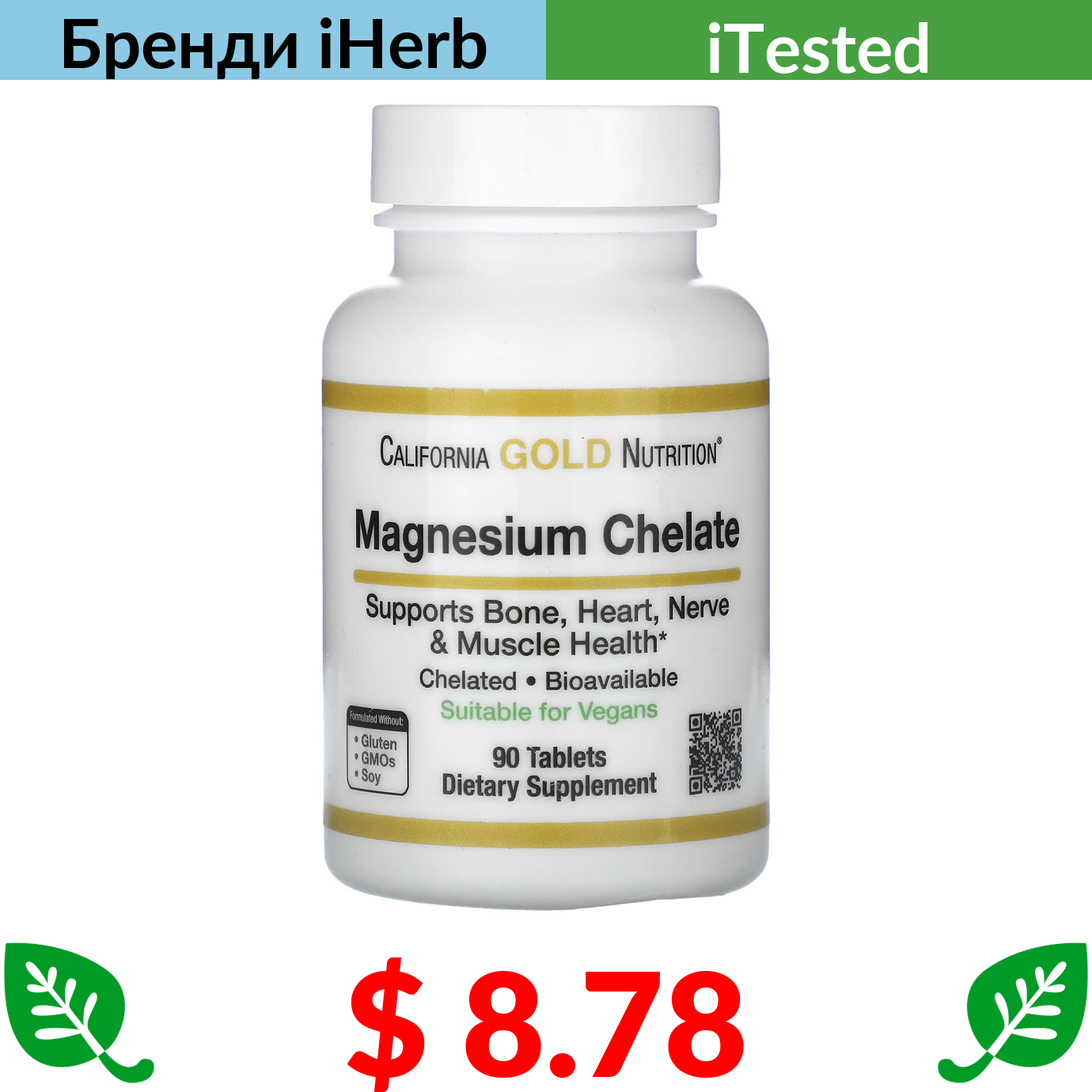 $ 8.78 California Gold Nutrition, хелат магнію, 210 мг, 90 таблеток (105 мг у таблетці)