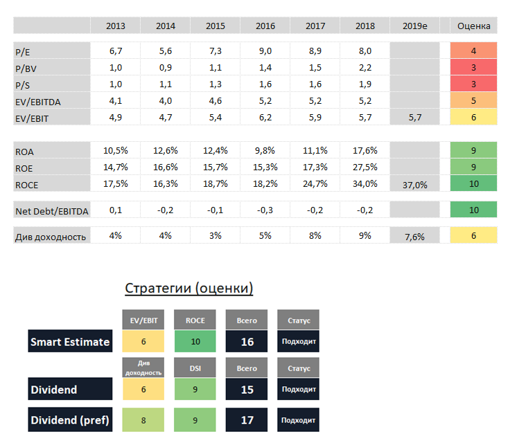 По мультипликатору EV/EBIT=5,7x Татнефть стоит на среднем для российского рынка уровне, однако высокая рентабельность инвестированного капитала на уровне 37% позволяет оставаться в портфеле по стратегии Smart Estimate.