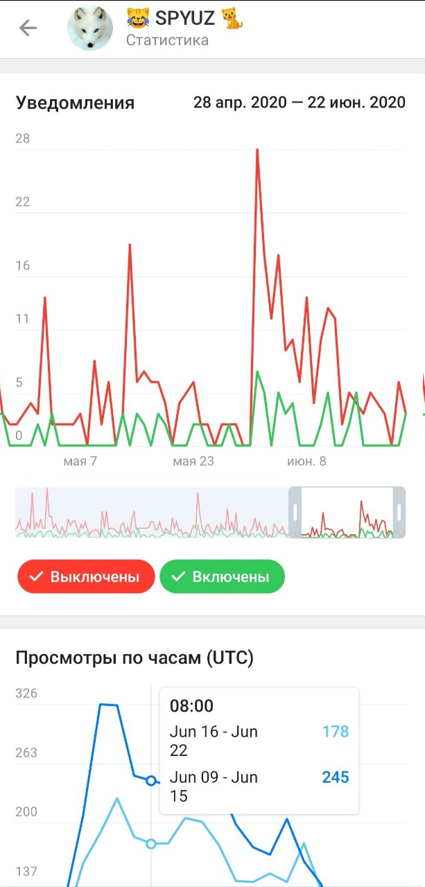 Общая информация, количество подписчиков... 'которое мы и так всегда знали', а процент включенных уведомлений у аудитории, это уже намного интереснее...