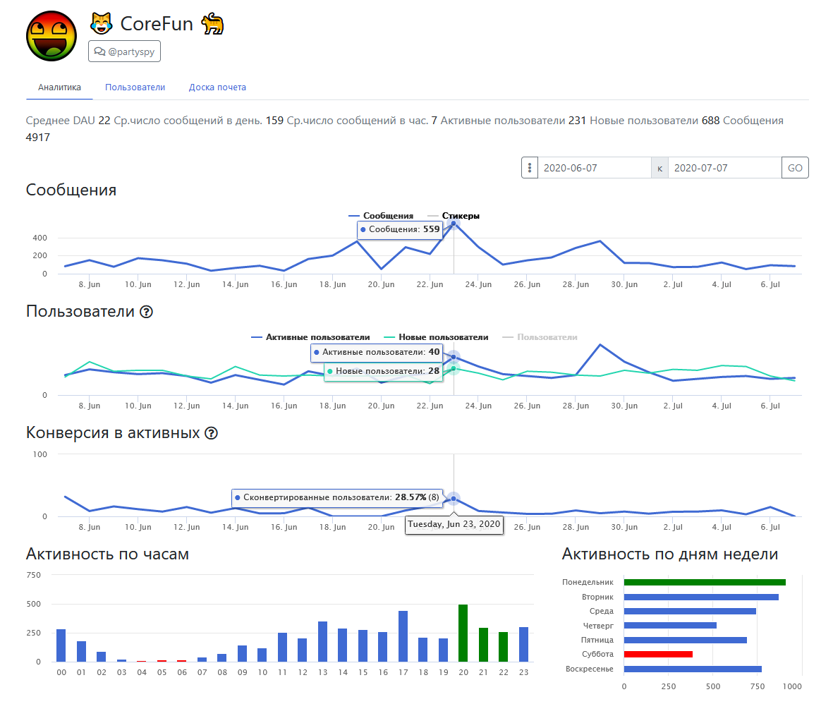 Даже модератор ChatKeeperBot, может показывать довольно хорошую аналитику