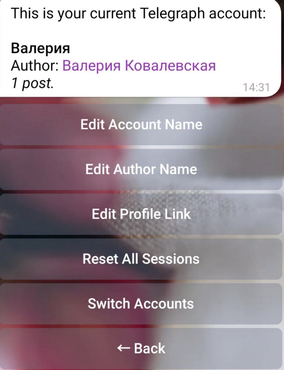 Теперь вы сможете редактировать все свои статьи с любого устройства и в любое время. Для этого выберете в боте @telegraph:
