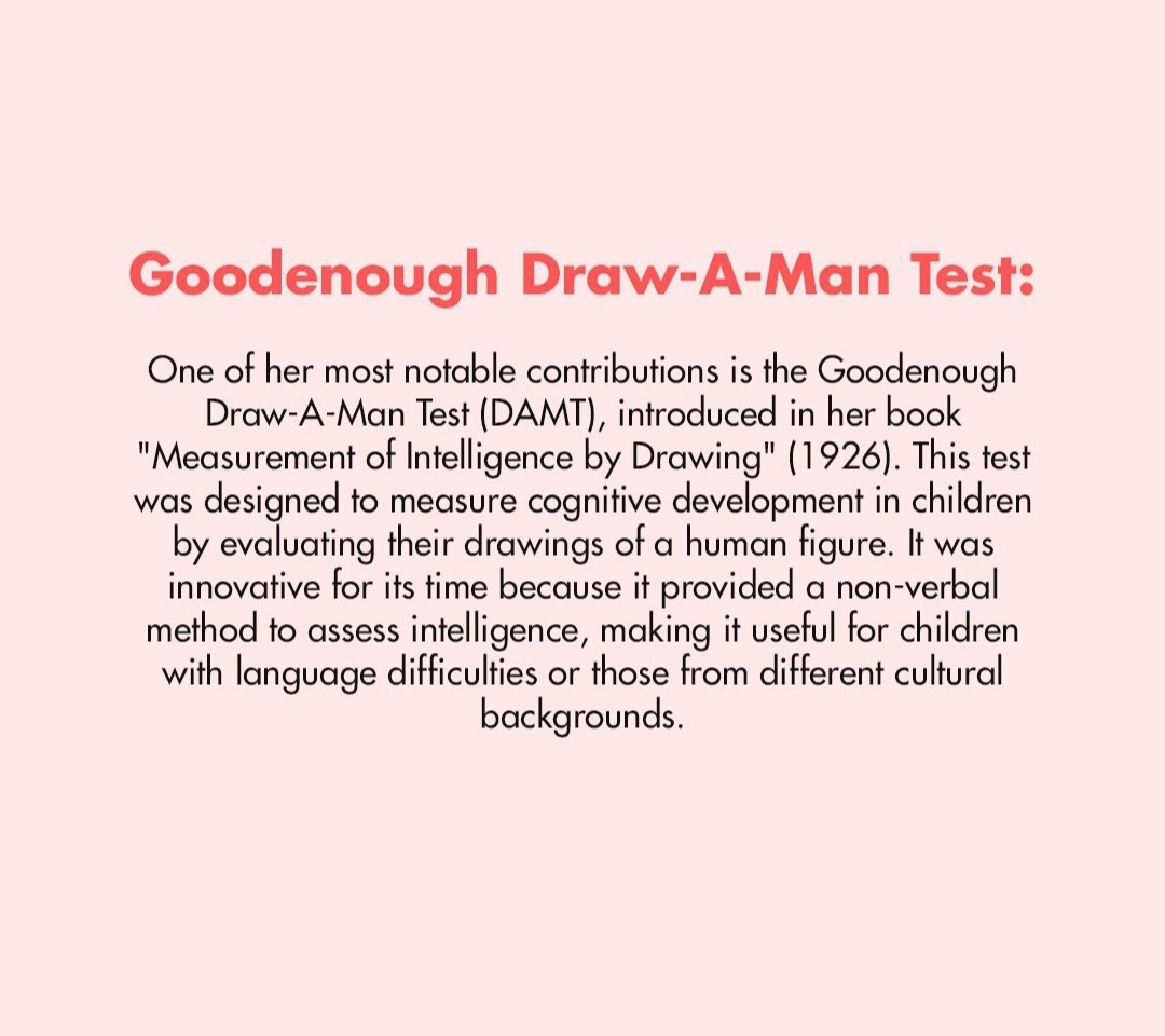 "Test Draw a Man" از خانم گودیناف (Goodenough-Harris Drawing Test) یک تست روانشناختی است که به منظور ارزیابی هوش و رشد شناختی کودکان استفاده میشود. در این تست، از کودک خواسته میشود که یک تصویر از یک انسان را بکشد. نتایج این تست میتواند به روانشناسان و معلمان کمک کند تا به درک بهتری از سطح رشد شناختی و تواناییهای تفکری کودک برسند.