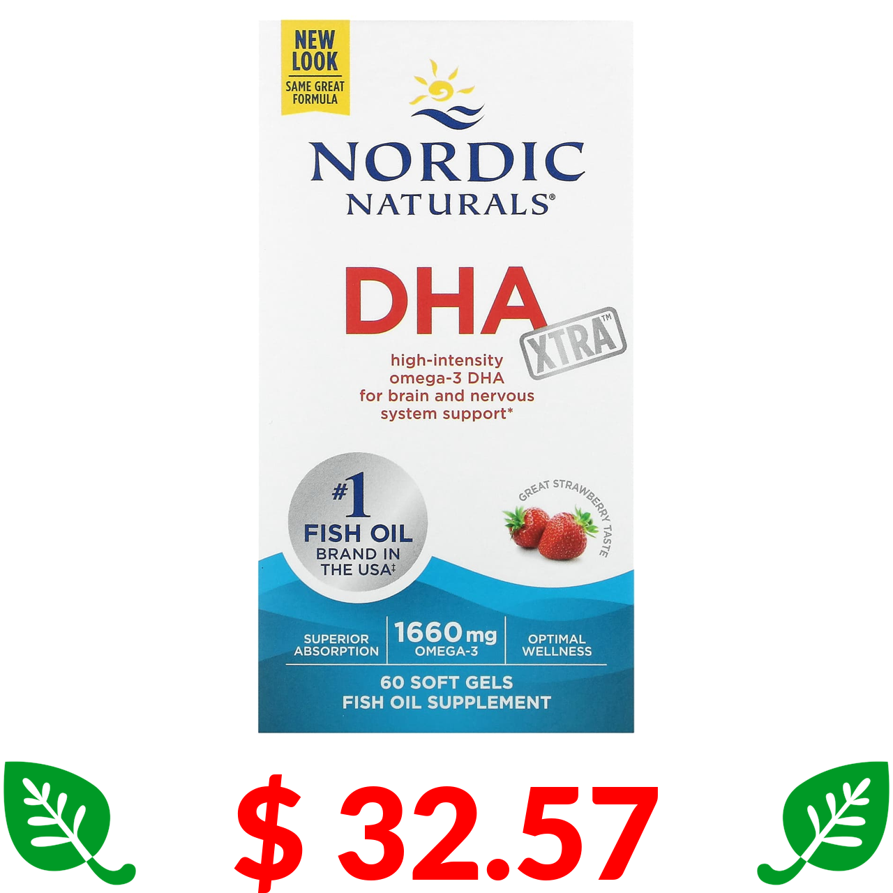 $ 32.57 Nordic Naturals, DHA Xtra, полуниця, 60 мг, 60 капсул