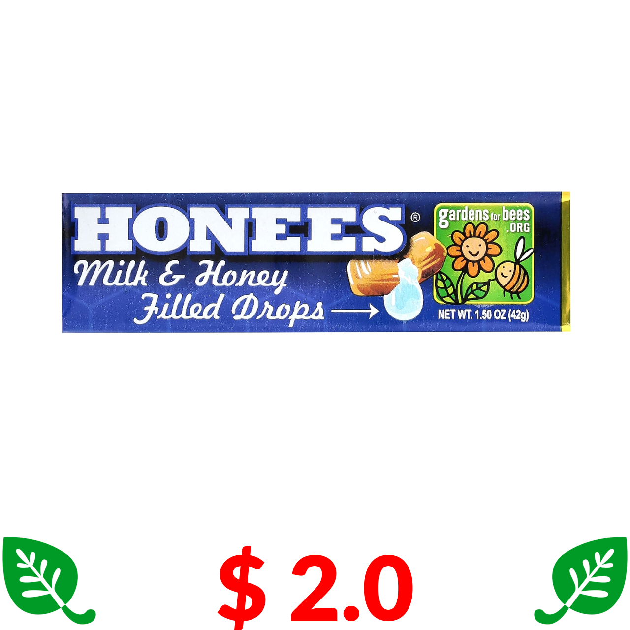 $ 2.0 Honees, краплі з молоком і медом, 42 г (1,5 унції)