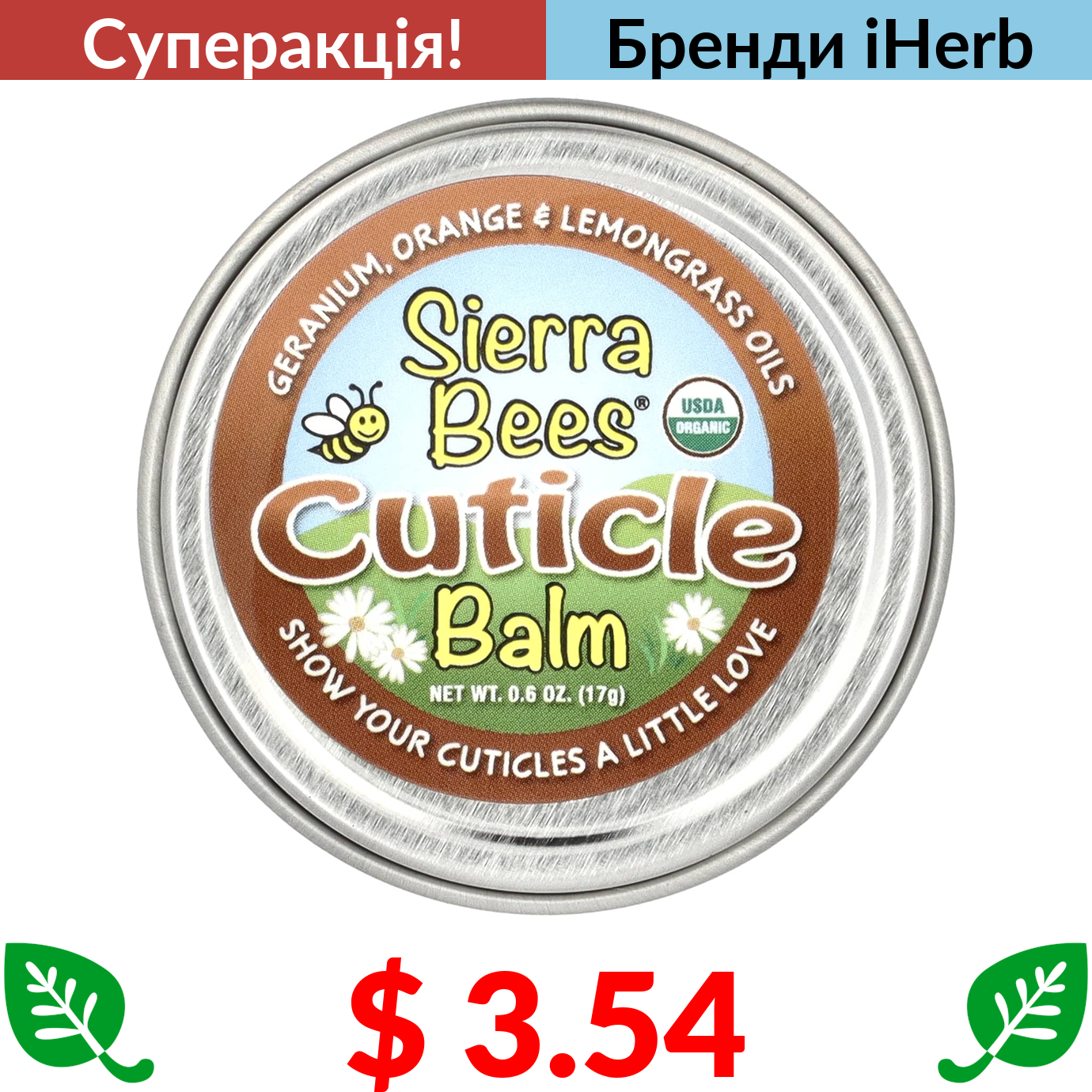 $ 3.54 Sierra Bees, бальзам для догляду за кутикулою, герань, апельсин і лемонграс, 17 г (0,6 унції)