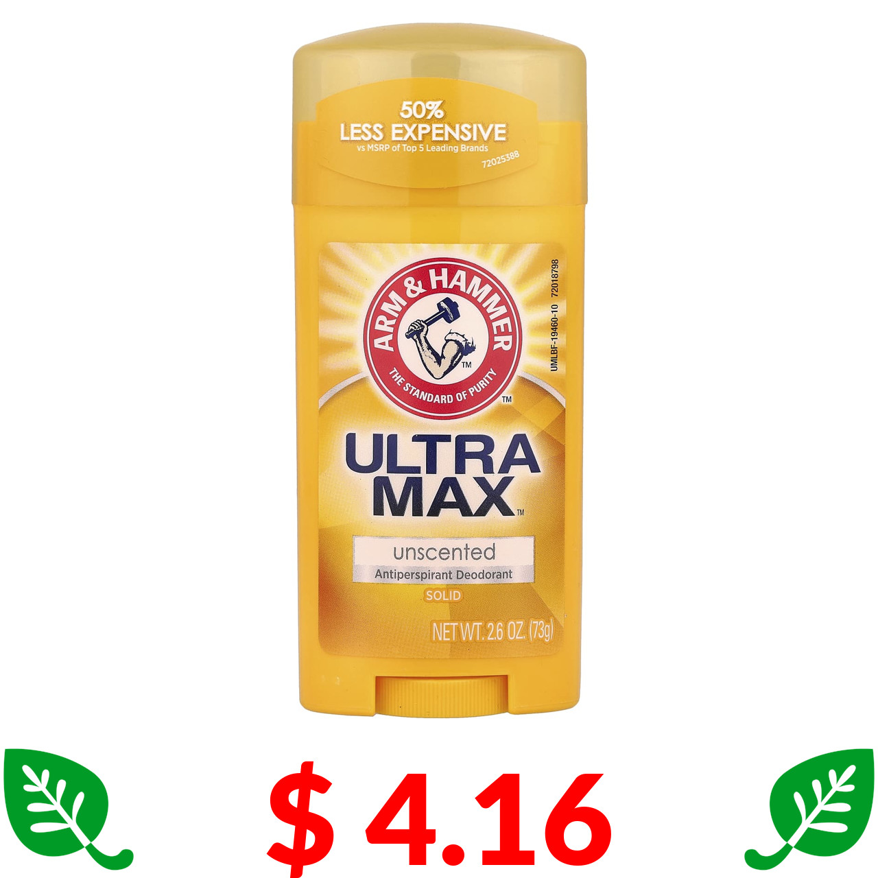 $ 4.16 Arm & Hammer, UltraMax, твердий дезодорант-антиперспірант, без запаху, 73 г (2,6 унції)