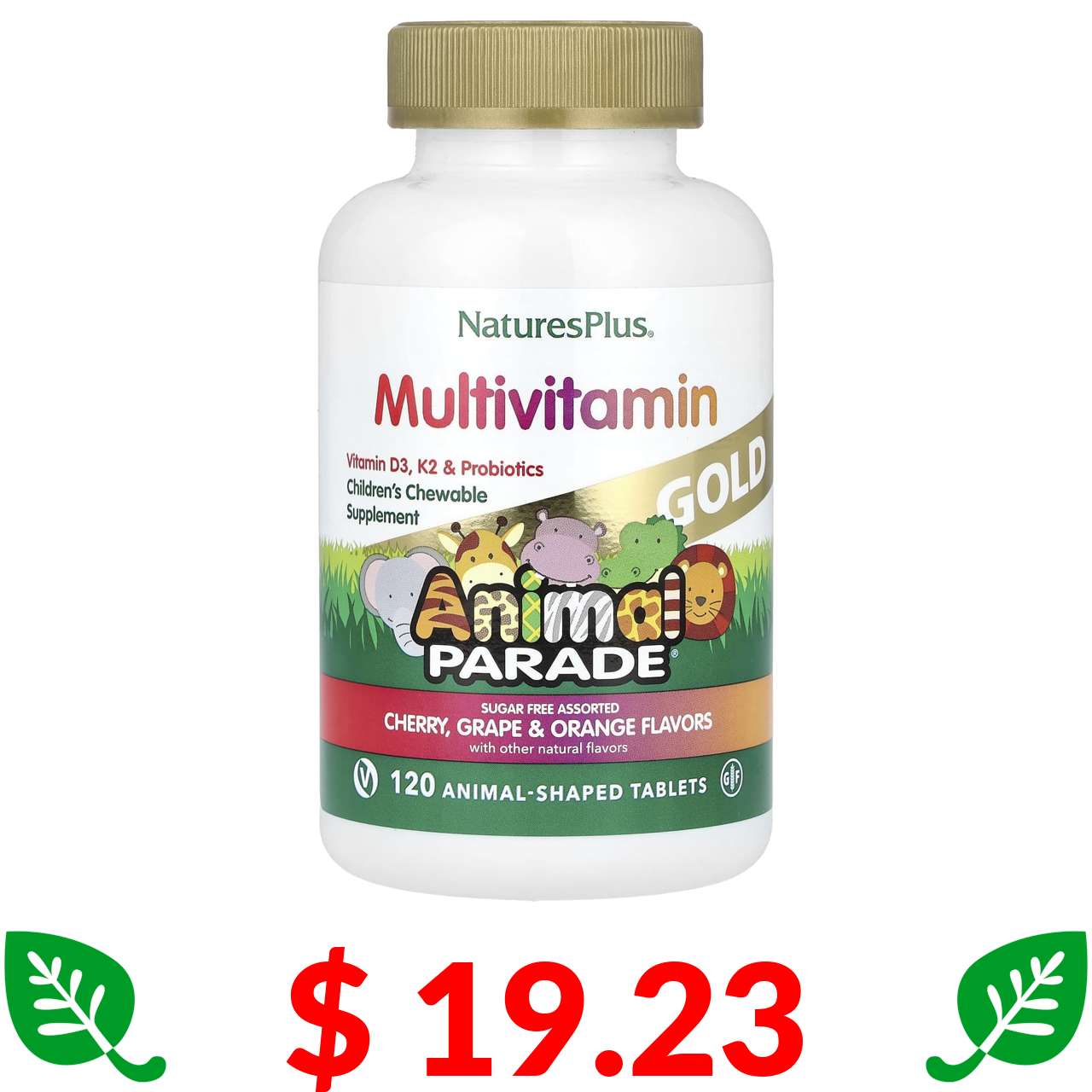 $ 19.23 Nature's Plus, Source of Life, Animal Parade Gold, жувальна добавка для дітей з мультивітамінами та мікроелементами, асорті смаків, 120 таблеток у формі тварин