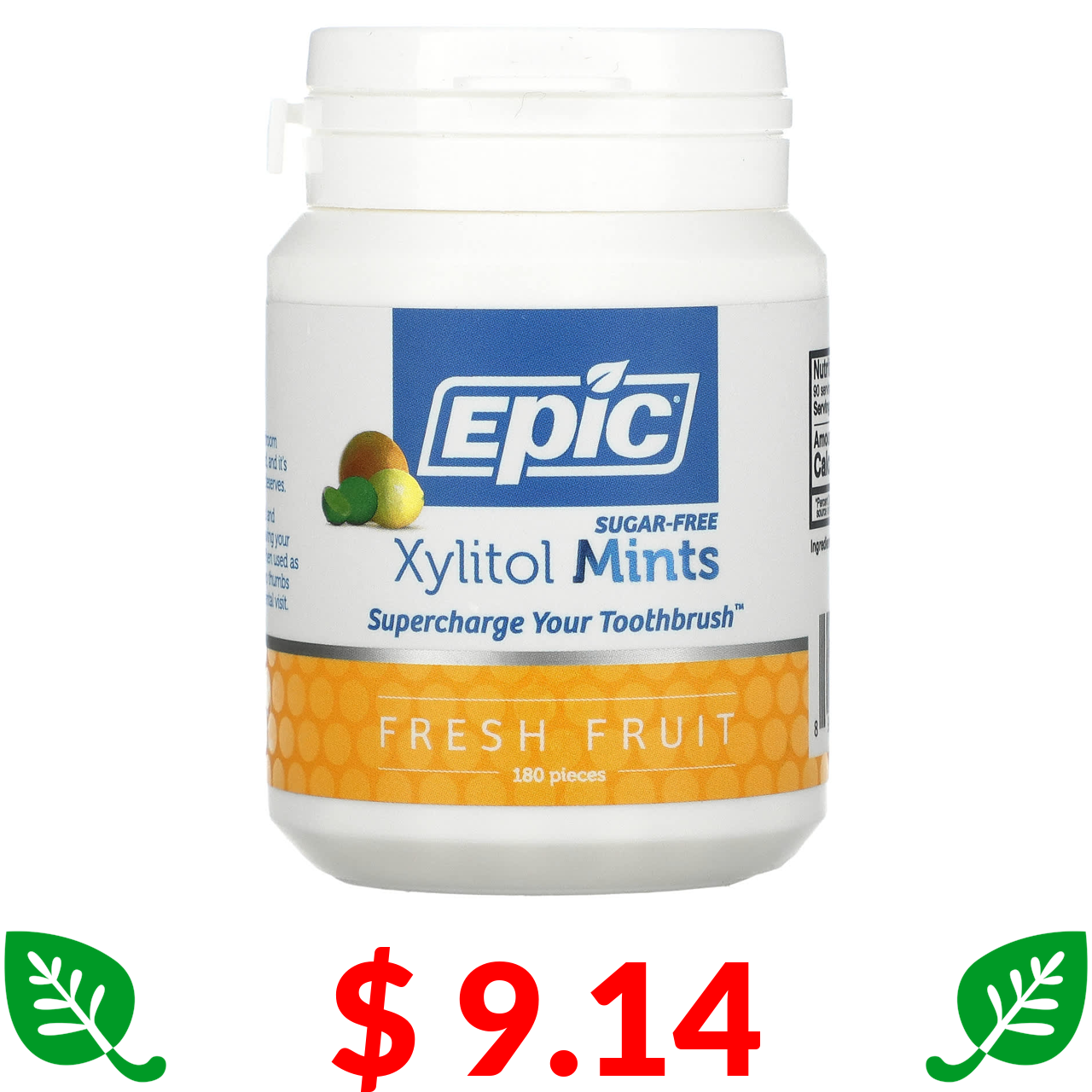 $ 9.14 Epic Dental, м’ятні цукерки з ксилітолом, свіжі фрукти, без цукру, 180 шт.