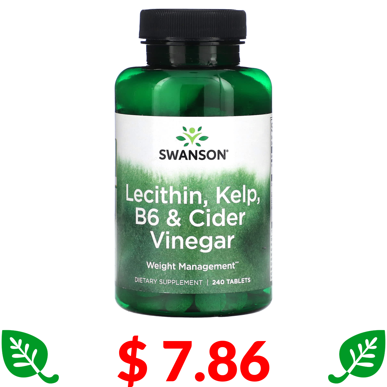 $ 7.86 Swanson, лецитин, бурі водорості, вітамін B6 і яблучний оцет, 240 таблеток