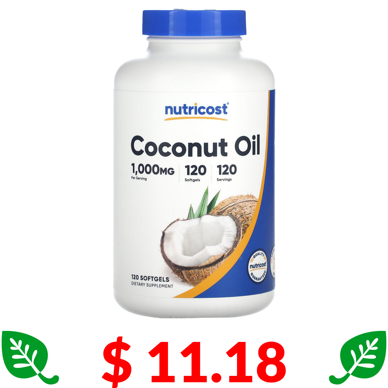 $ 11.18 Nutricost, кокосова олія, 1000 мг, 120 капсул