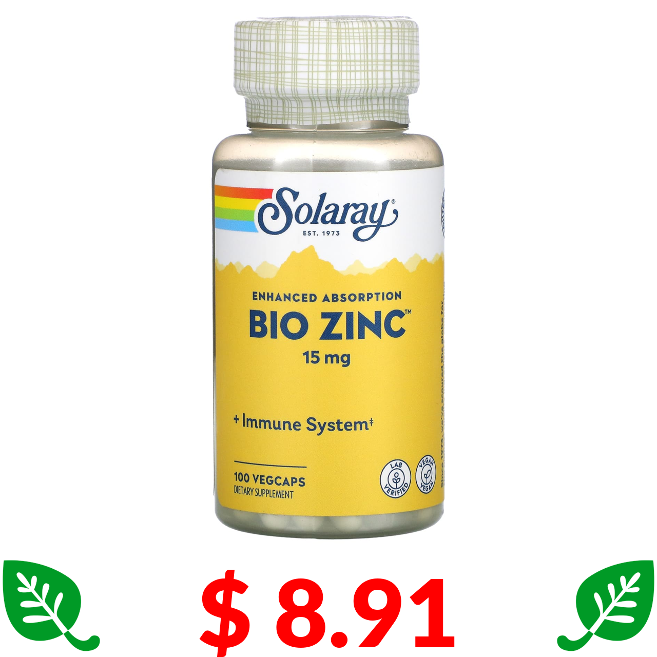 $ 8.91 Solaray, Bio Zinc, 15 мг, 100 капсул VegCap