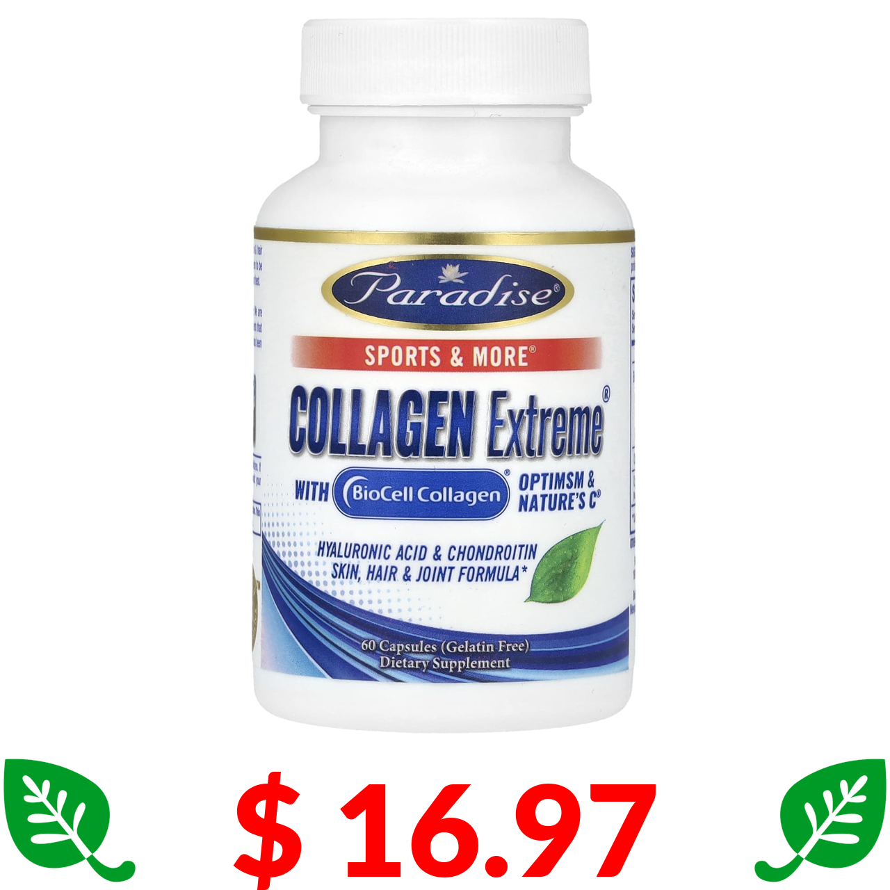 $ 16.97 Paradise Herbs, Collagen Extreme з колагеном BioCell, OptiMSM & Nature's C, 60 капсул