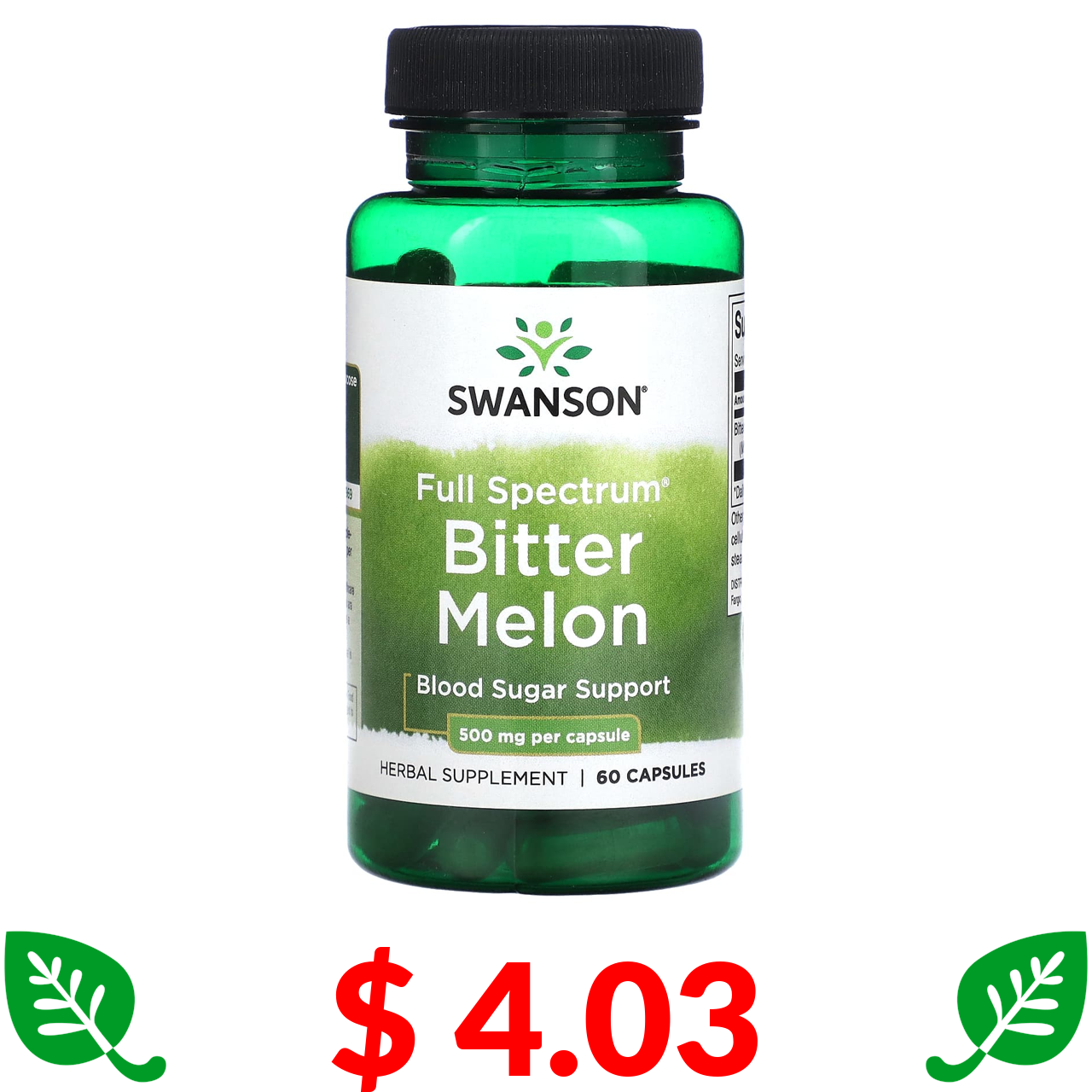 $ 4.03 Swanson, повний спектр дії, гірка диня, 500 мг, 60 капсул