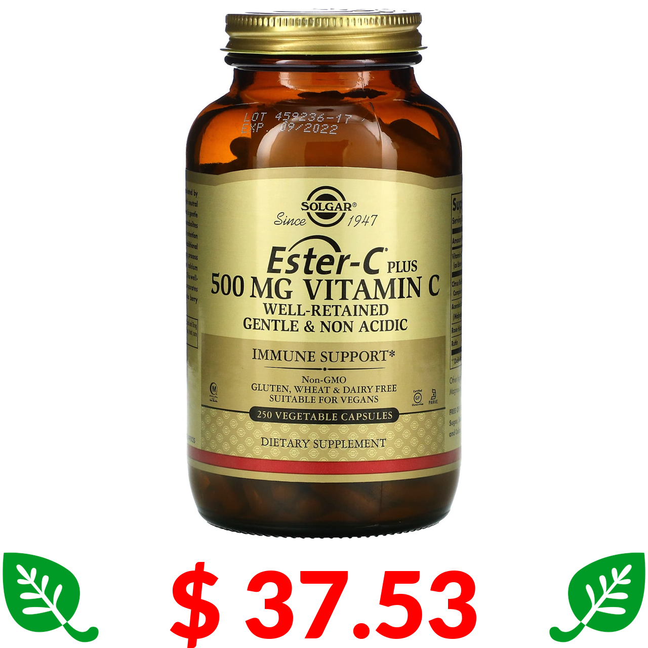 $ 37.53 Solgar, Ester-C Plus, вітамін C, 500 мг, 250 вегетаріанських капсул