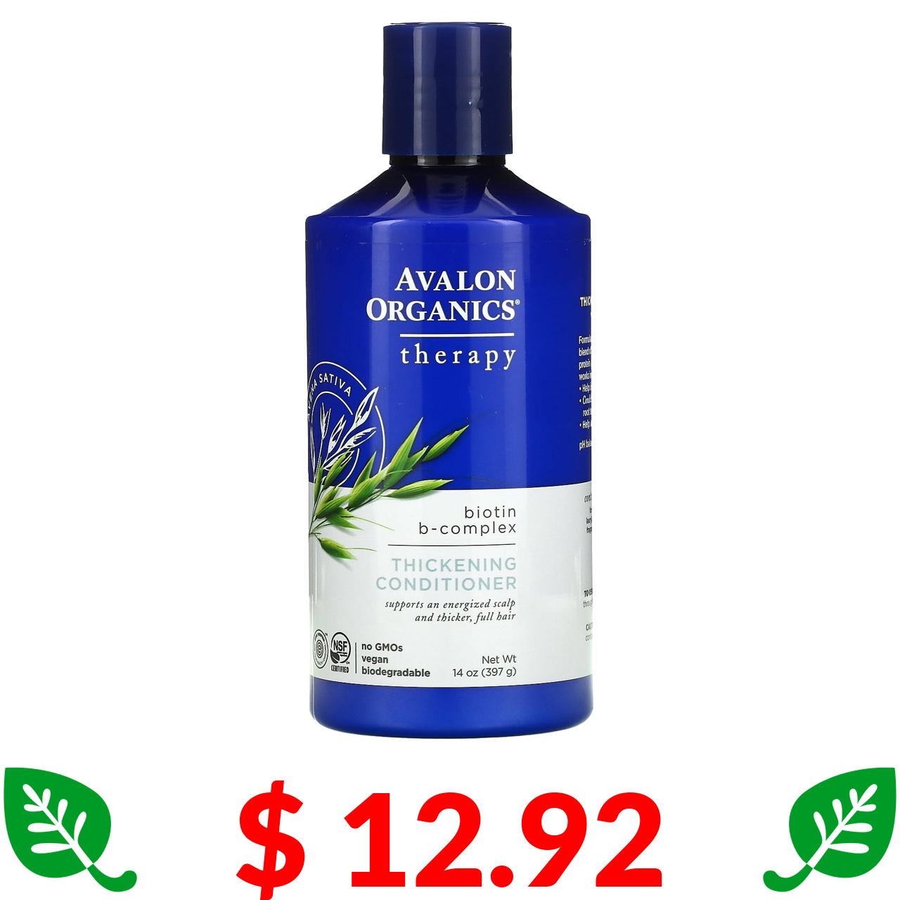 $ 12.92 Avalon Organics, кондиціонер для густоти волосся, з біотином і комплексом вітамінів групи В, засіб для догляду, 397 г (14 рідк. унцій)