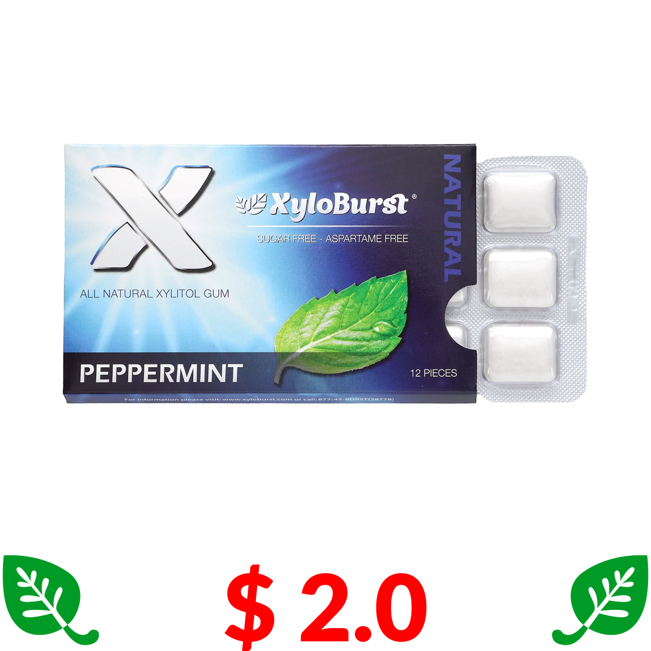 $ 2.0 Xyloburst, ксилітолова камедь, перцева м’ята, 12 шт