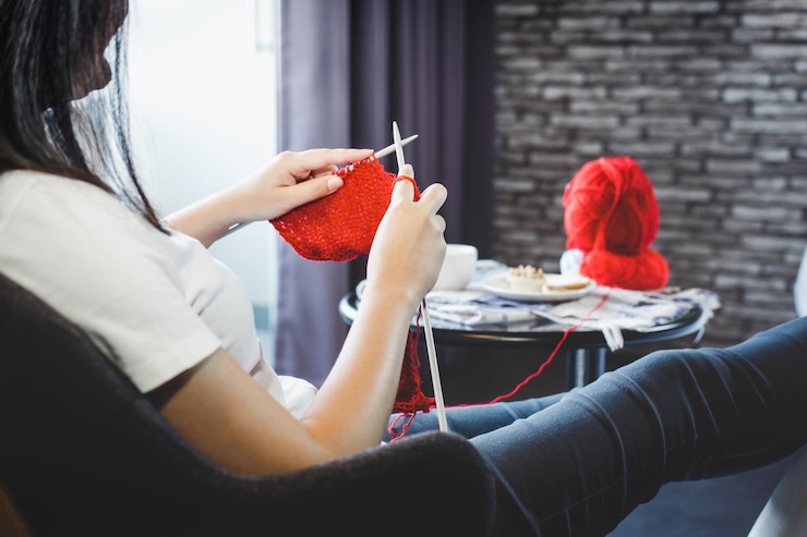 то Женщина Вяжет Спицами