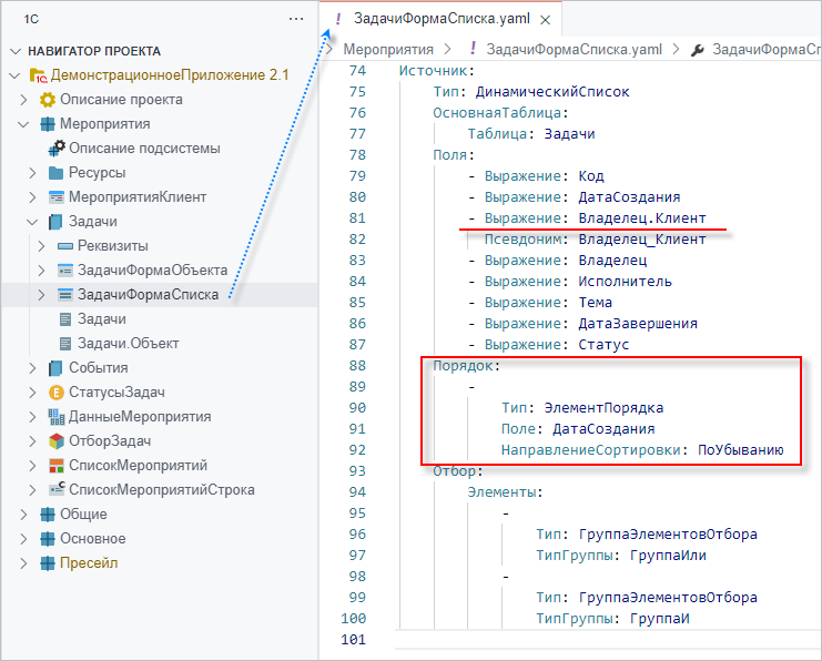 тоги динамический список