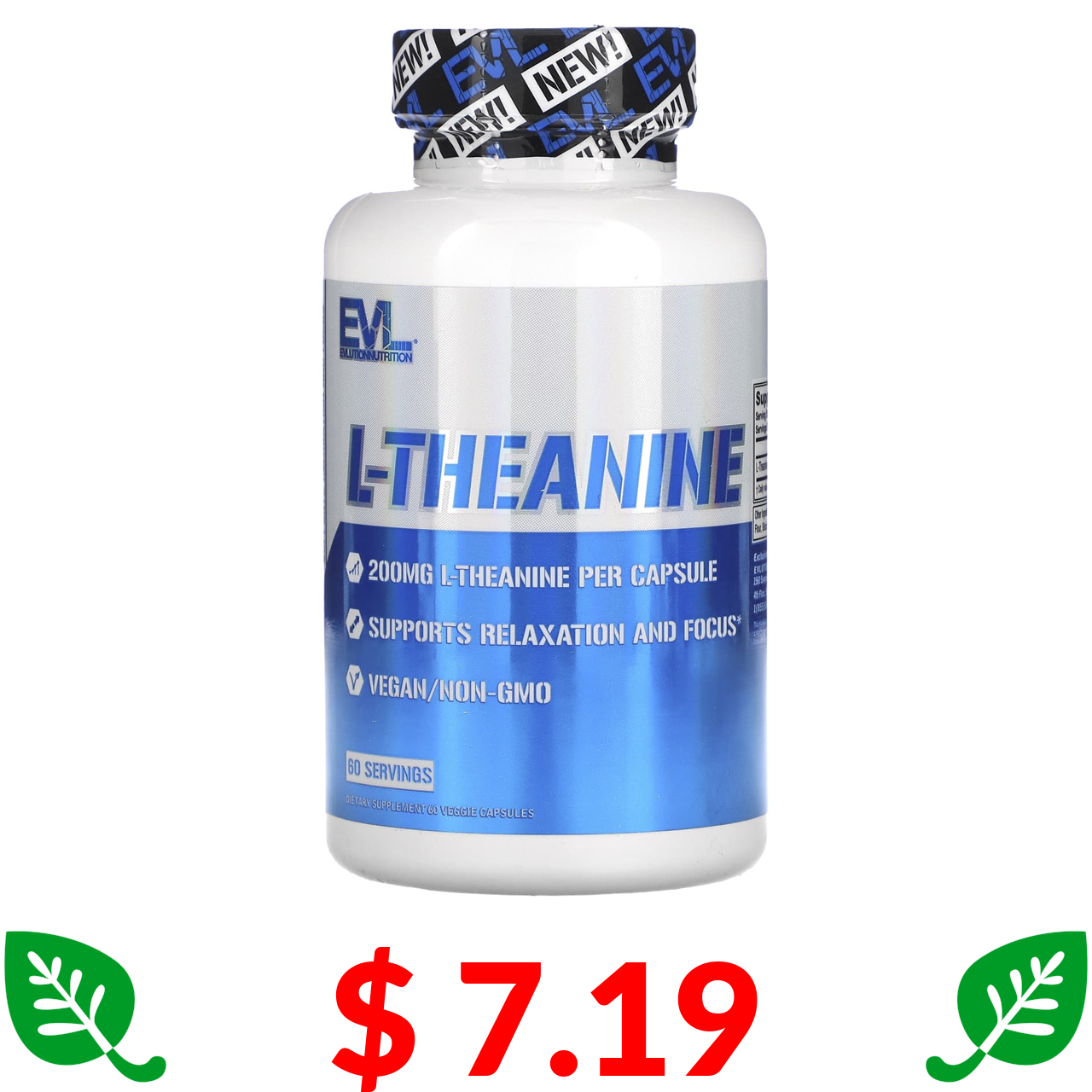 $ 7.19 EVLution Nutrition, L-теанін, 200 мг, 60 вегетаріанських капсул