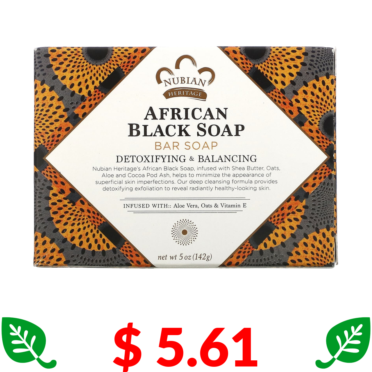 $ 5.61 Nubian Heritage, африканське чорне кускове мило, 142 г (5 унцій)