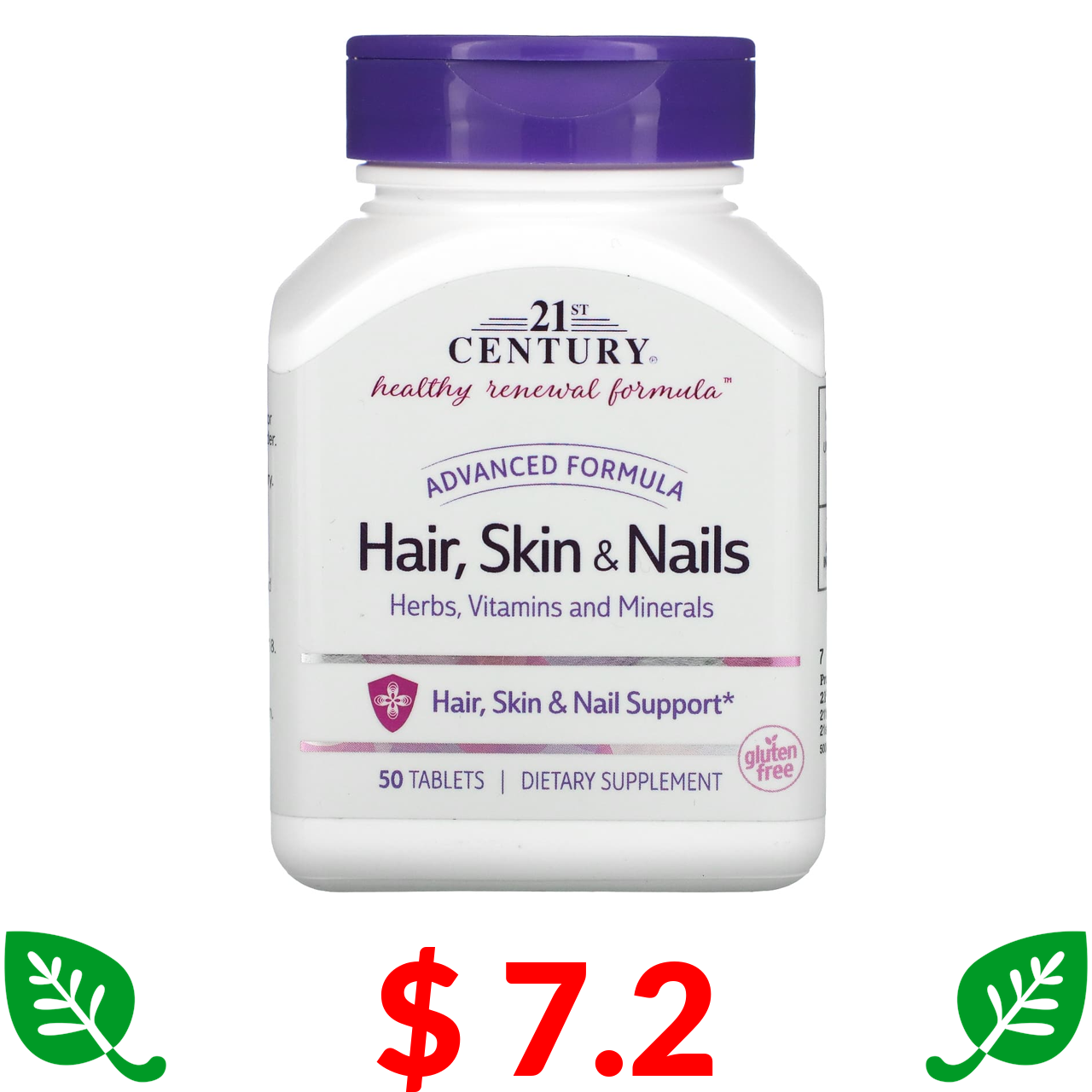 $ 7.2 21st Century, комплекс для волосся, шкіри та нігтів, поліпшена формула, 50 таблеток