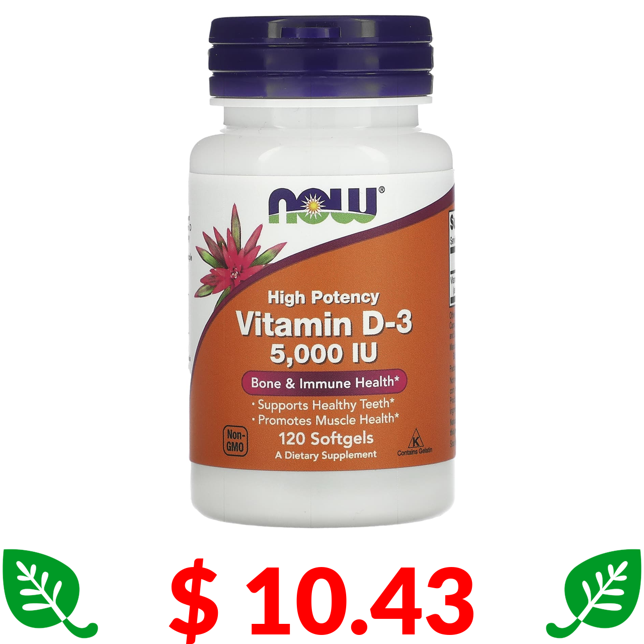 $ 10.43 Now Foods, високоефективний вітамін D3, 5000 МО, 120 капсул