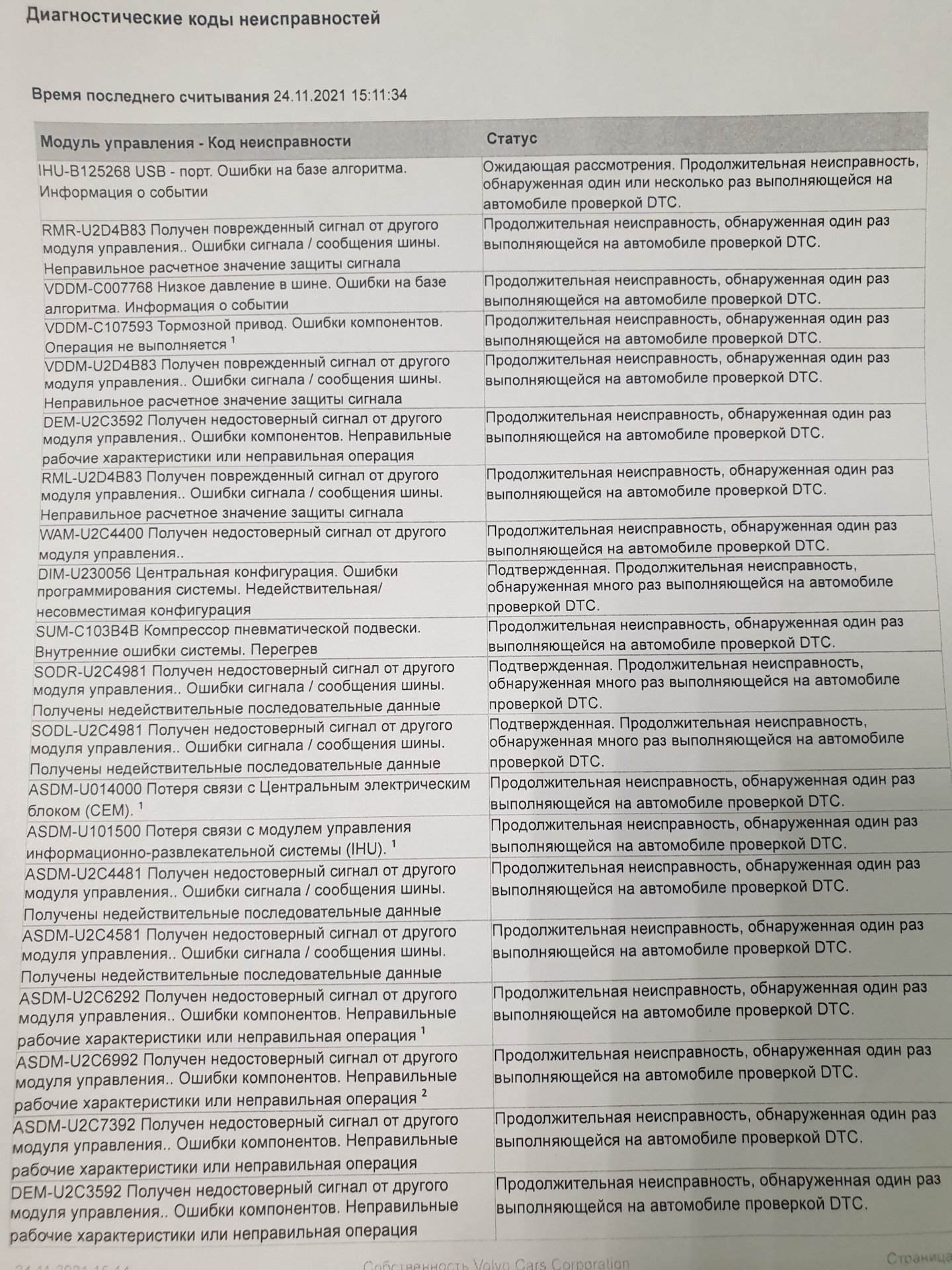тор вольво коды ошибок