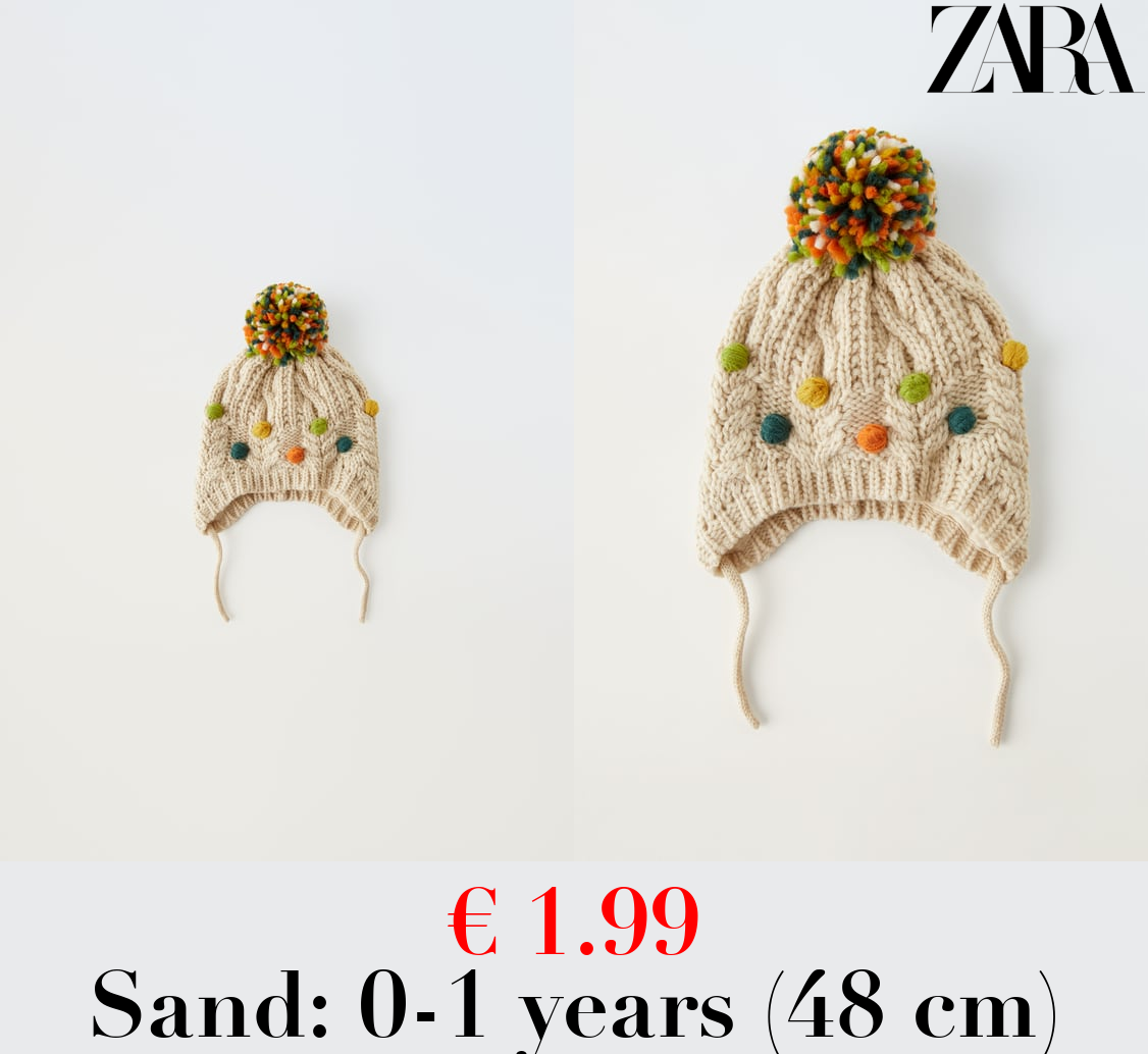 € 1.99 KNIT POMPOM BEANIE WITH EMBROIDERY AND EARMUFFS