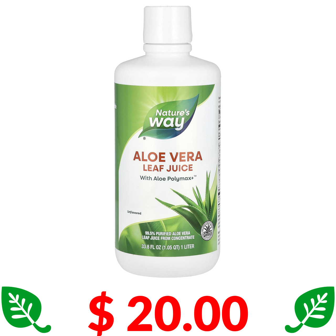 $ 20.00 Nature's Way, сік із листя алое вера, з нейтральним смаком, 1 л (33,8 рідк. унції)