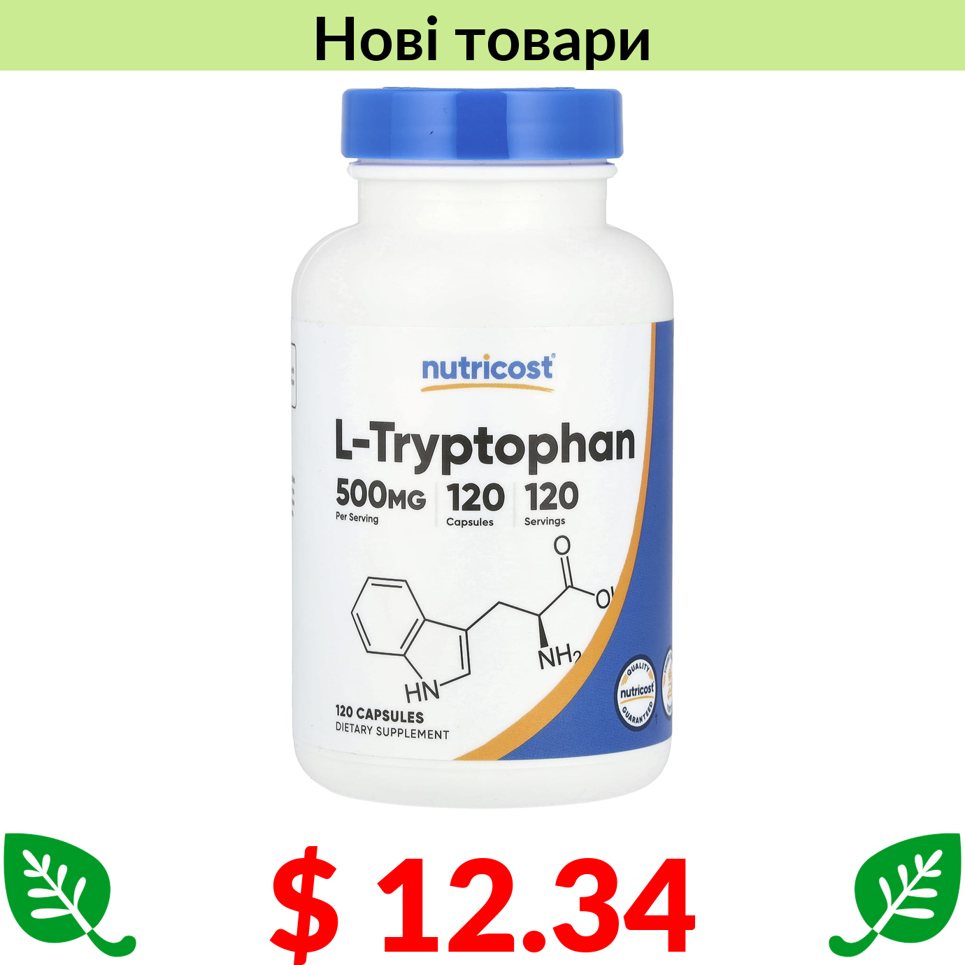 $ 12.34 Nutricost, L-триптофан, 500 мг, 120 капсул