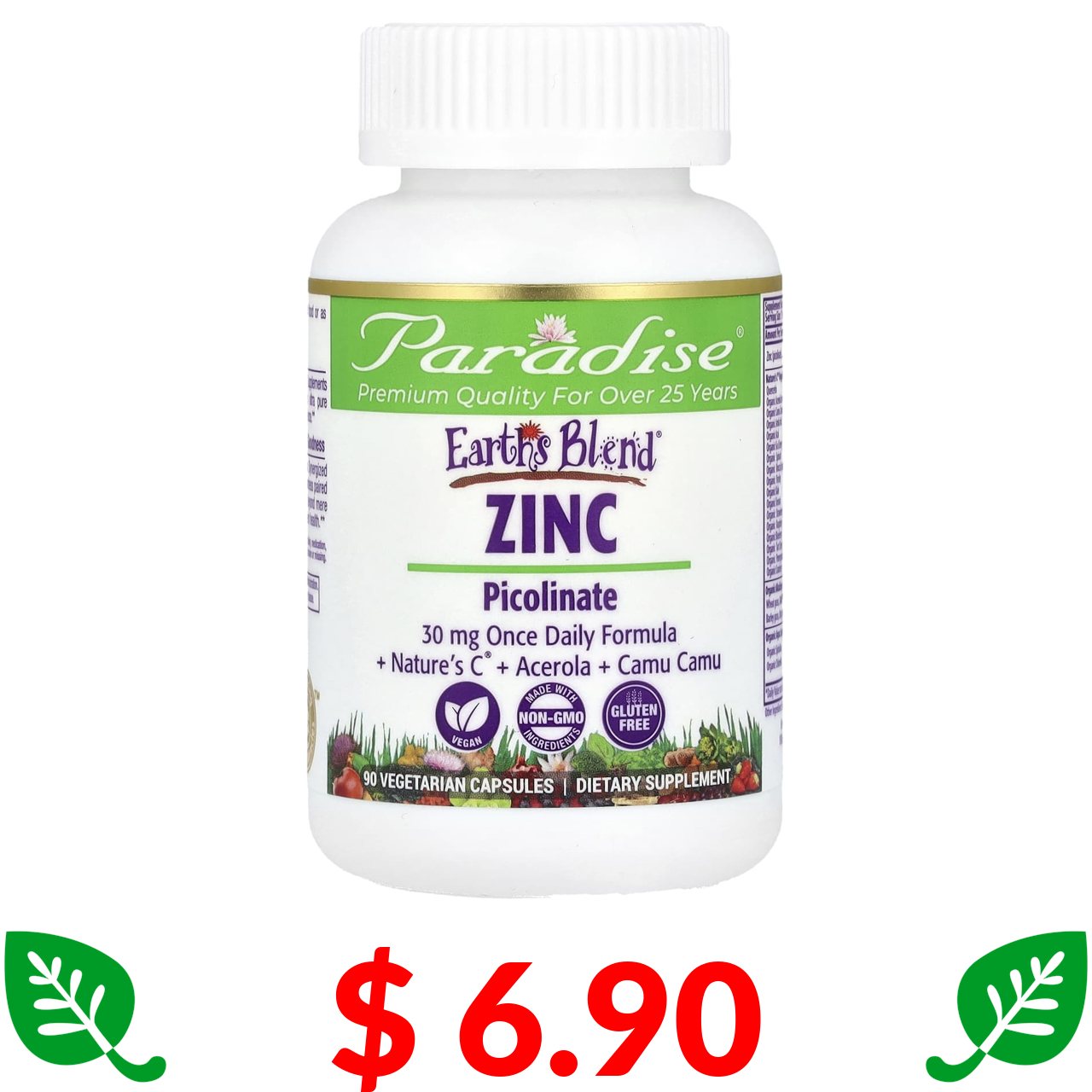 $ 6.90 Paradise Herbs, Earth's Blend, цинк, піколінат, 90 вегетаріанських капсул