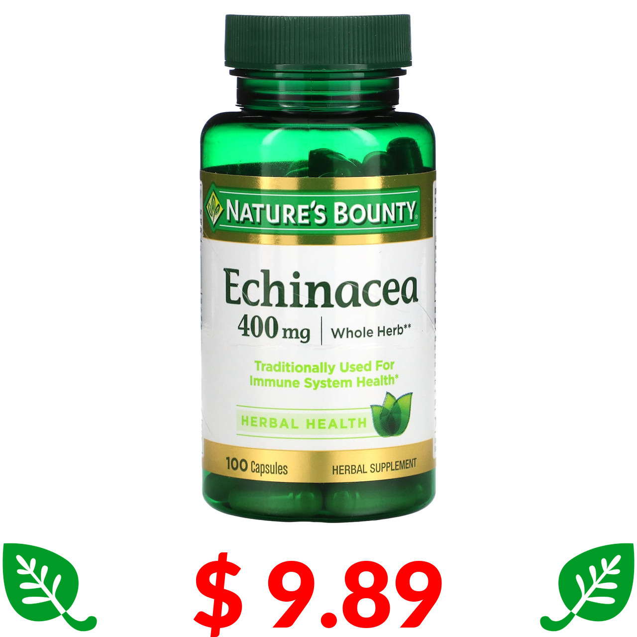 $ 9.89 Nature's Bounty, ехінацея, 400 мг, 100 капсул