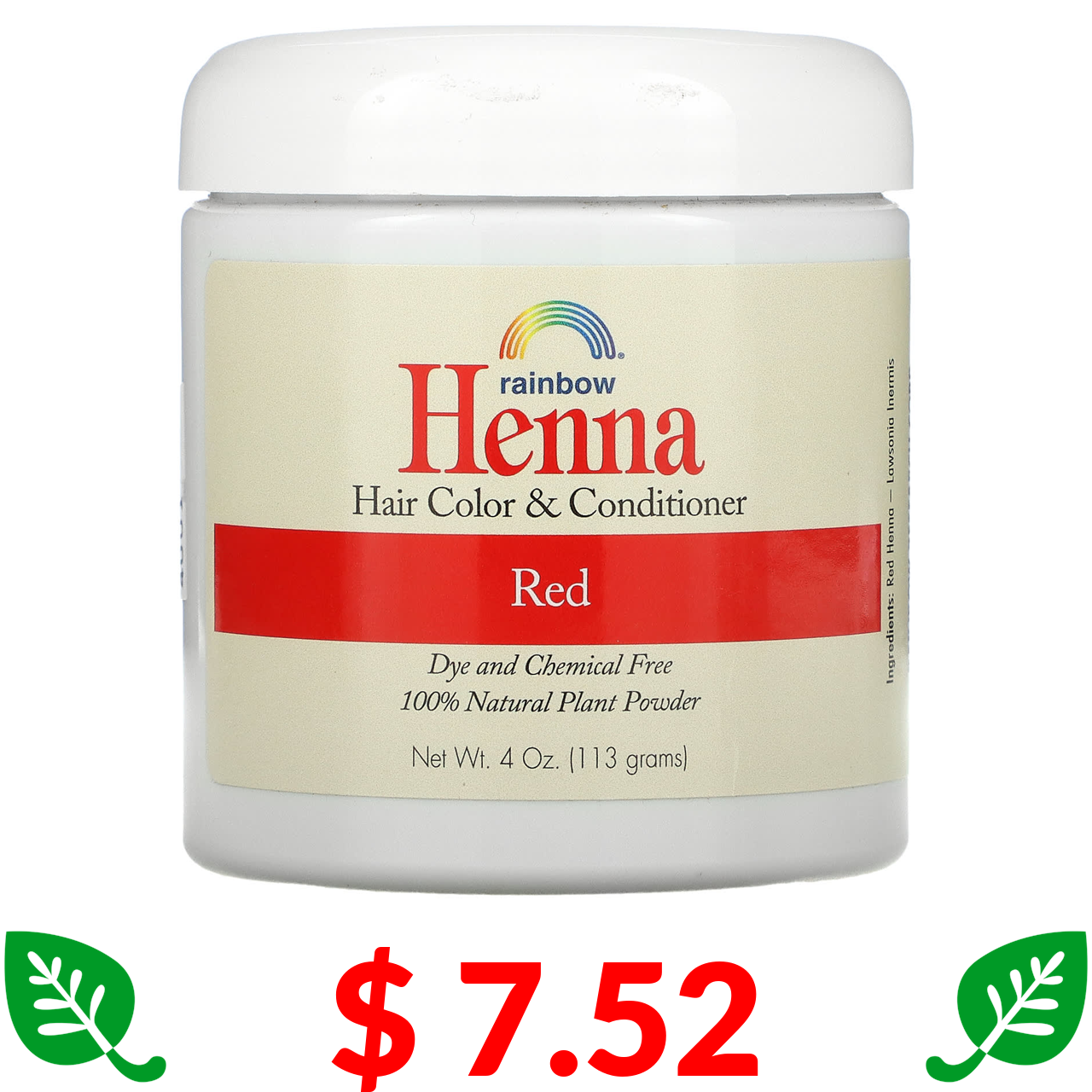 $ 7.52 Rainbow Research, Хна, фарба та кондиціонер для волосся, червоний, 4 унції (113 г)