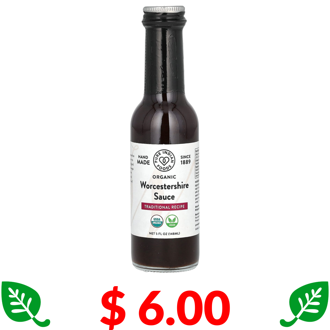 $ 6.00 Pure Indian Foods, органічний вустерський соус, 148 мл (5 рідк. унцій)
