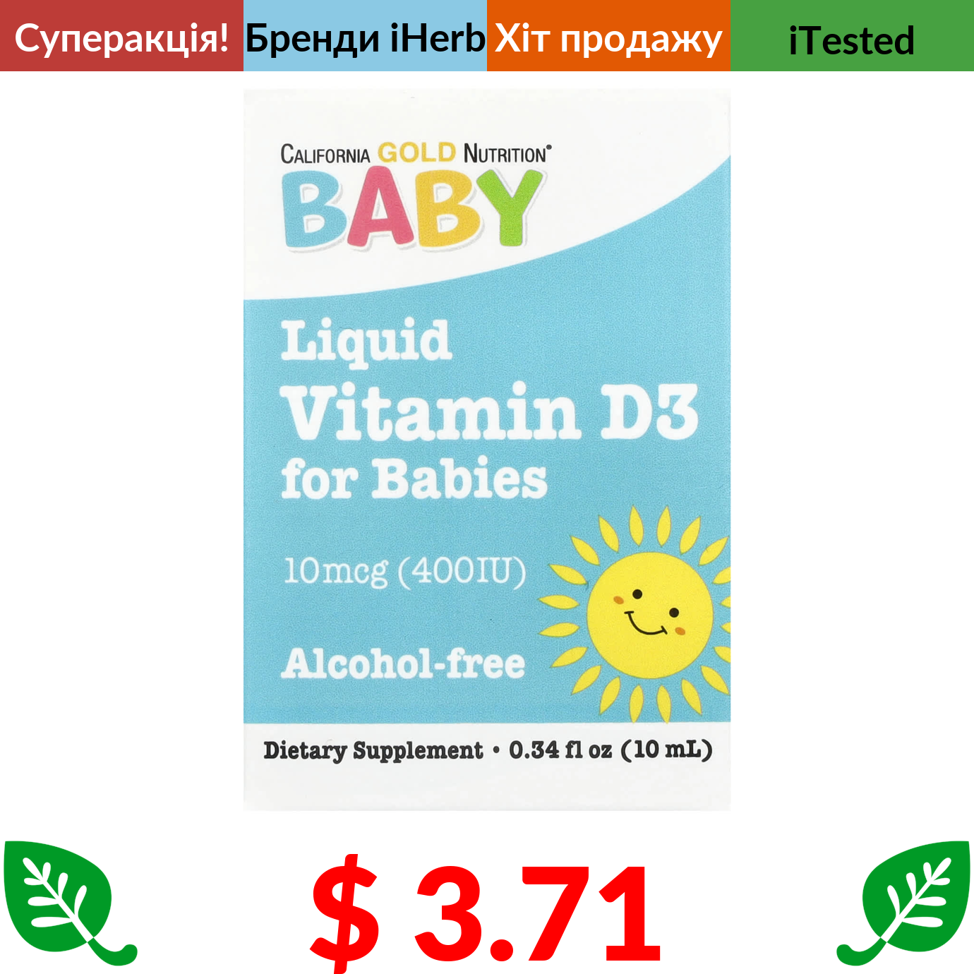 $ 5.04 California Gold Nutrition, вітамін D3, 50 мг (2000 МО), 90 капсул із риб’ячого желатину
