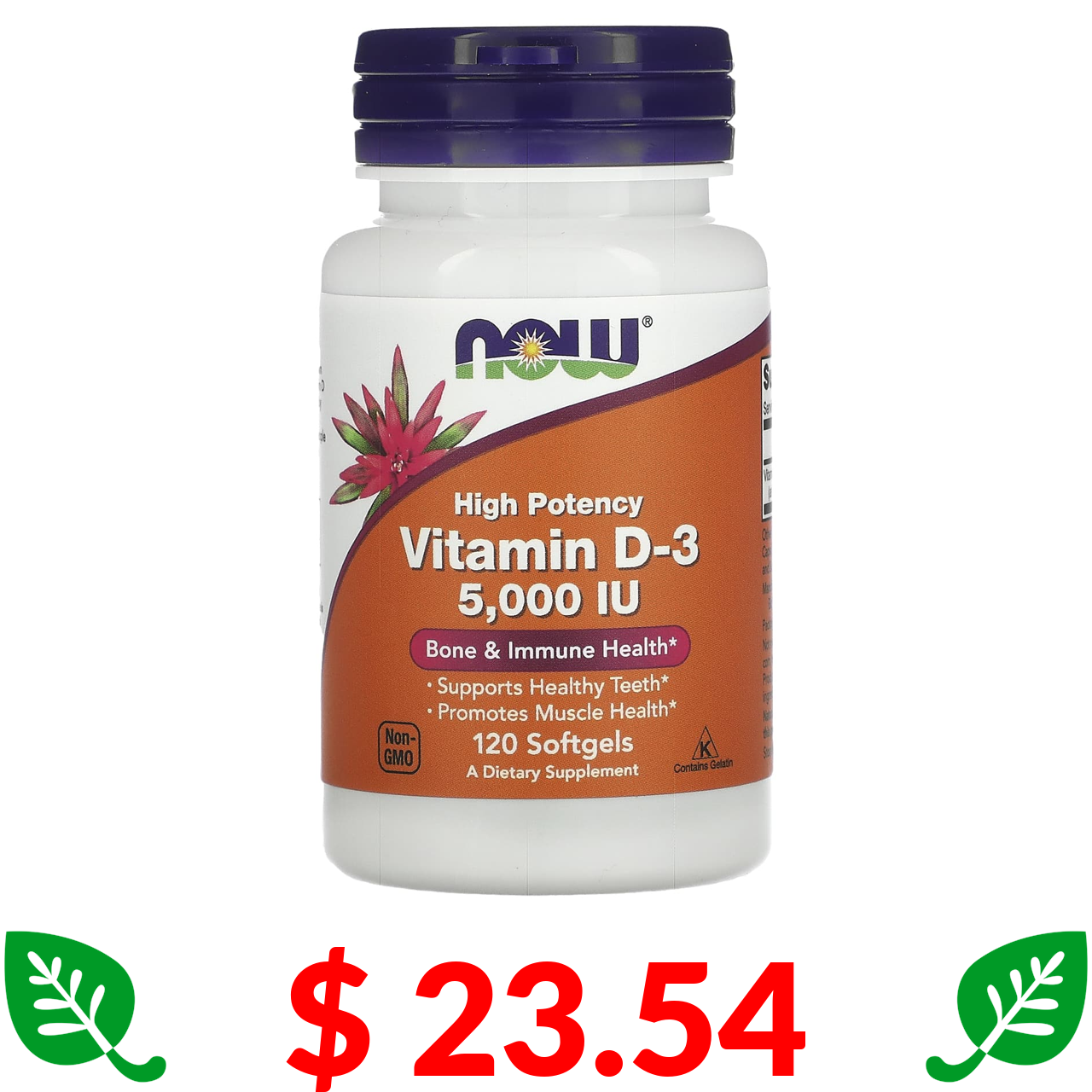 $ 23.54 Now Foods, високоефективний вітамін D3, 5000 МО, 120 капсул