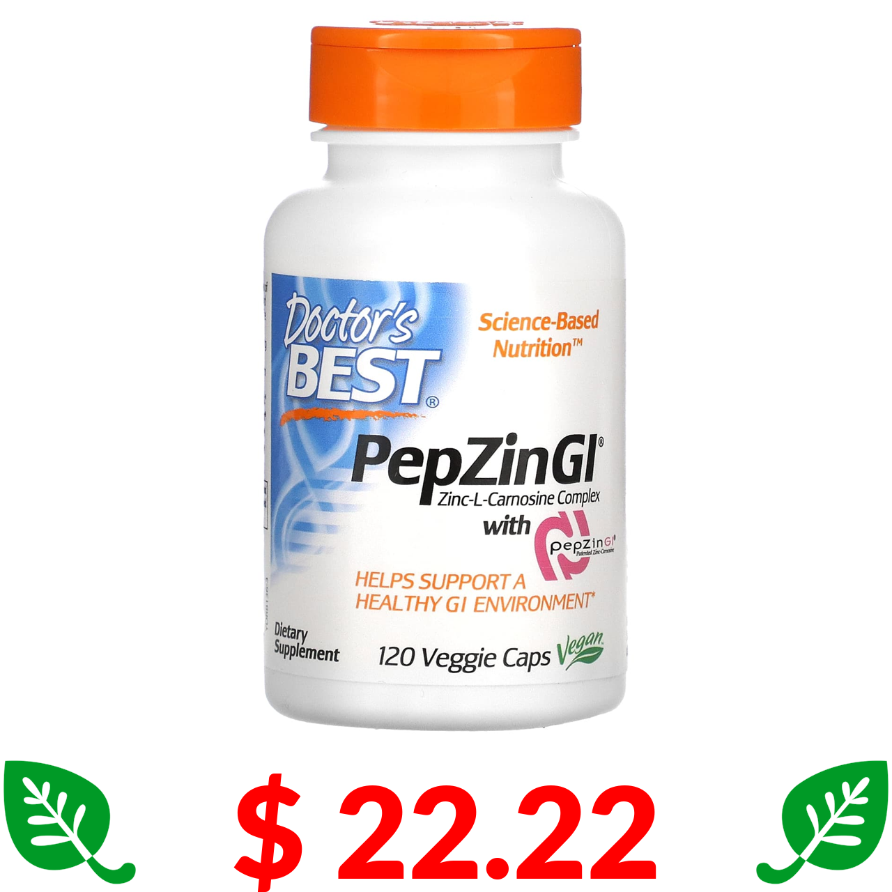 $ 22.22 Doctor's Best, PepZin GI, комплекс цинк-L-карнозина, 120 рослинних капсул